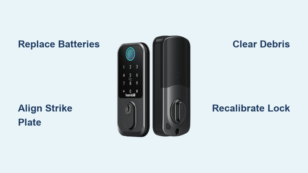 Your Hornbill A4-BF smart lock glows with promise, but the electronic lock function stays stubbornly dead. You turn the deadbolt