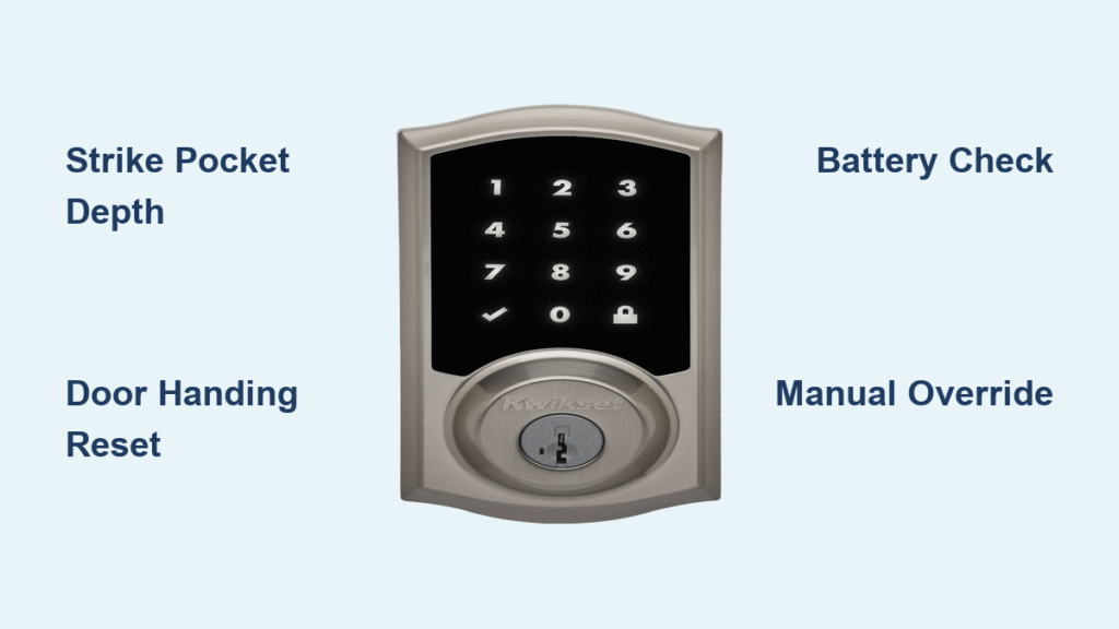 When your Kwikset smart lock jammed because the deadbolt can’t fully extend, the strike pocket depth is almost always the culprit. All Halo, Aura, SmartCode, and Z-Wave models require a precise 1-inch (25 mm) deep recess in your door frame. If yours measures less—common with older doors or rushed installations—the bolt hits the frame edge, triggering the lock’s obstruction sensor. This isn’t a defect; it’s your lock correctly reporting insufficient clearance.