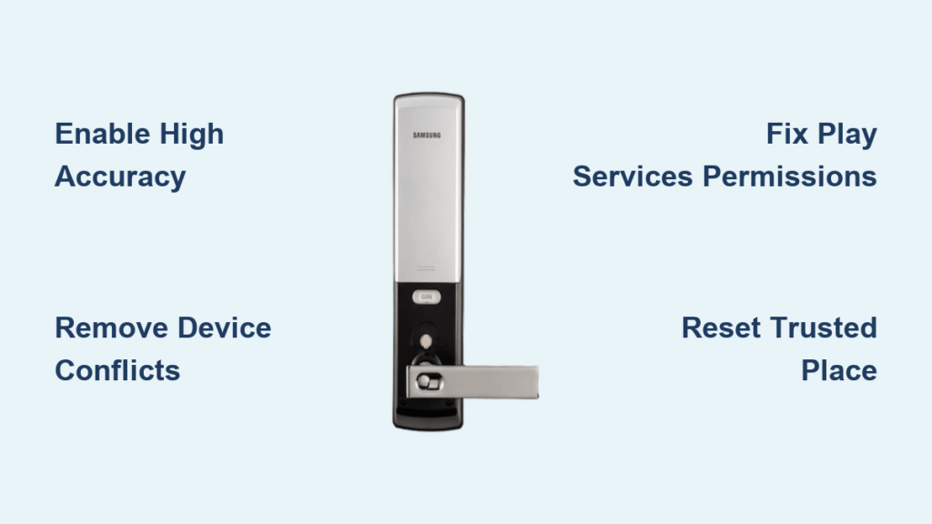 Trusted Places requires pinpoint location precision within a 50-meter radius. If your S9 misjudges your position by even a few buildings, Smart Lock stays locked down. High Accuracy Mode isn’t optional—it’s mandatory for Trusted Places to function. Standard battery-saving GPS modes lack the satellite triangulation needed to distinguish your driveway from the neighbor’s.