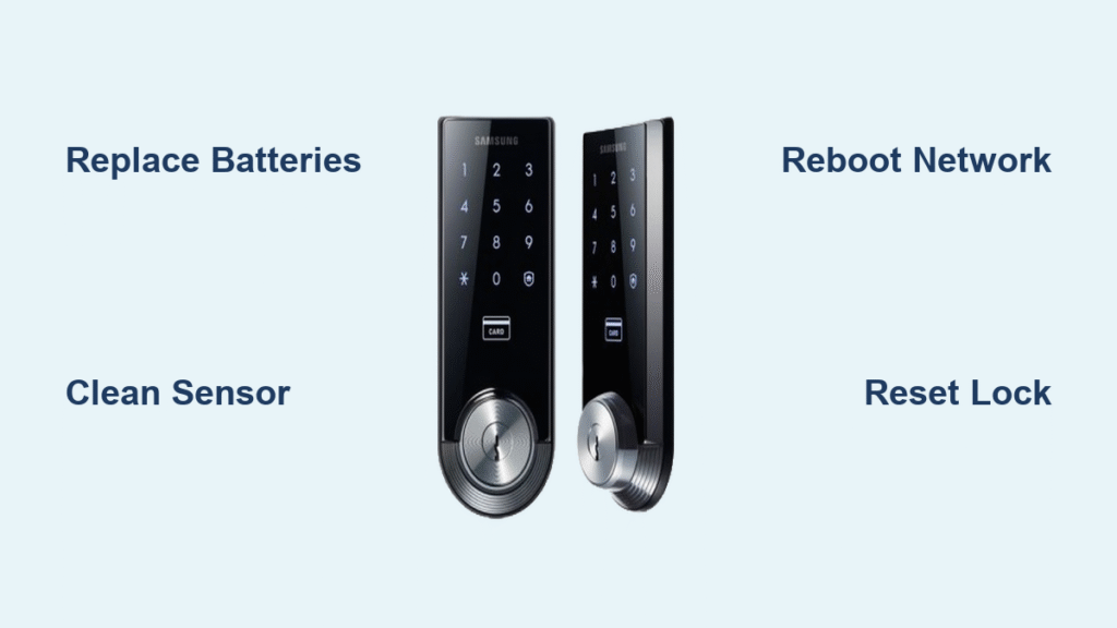 When your lock shows zero lights or sounds, power issues cause 75% of complete lockouts according to Samsung’s internal diagnostics. Start here before dismantling your door.