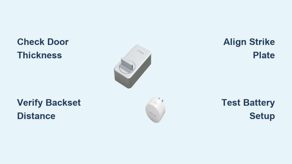 Your door must be 1-3/8″ to 1-3/4″ thick (35-44 mm). Measure at the deadbolt position—never near the hinges—since doors often taper. Use a tape measure against the door edge while the deadbolt is extended. If your measurement falls outside this range, the lock’s mounting plate won’t seat flush, causing alignment issues that trigger constant error messages. For doors thicker than 1-3/4″, Wyze sells optional extension kits—don’t force installation with standard hardware.